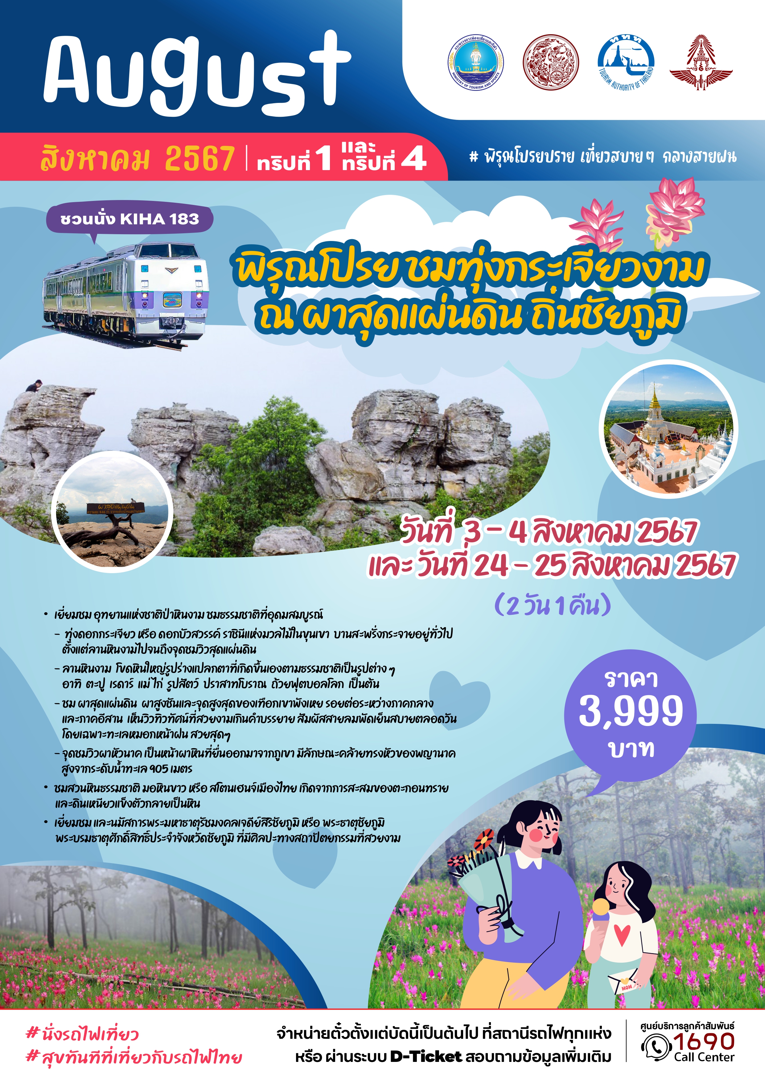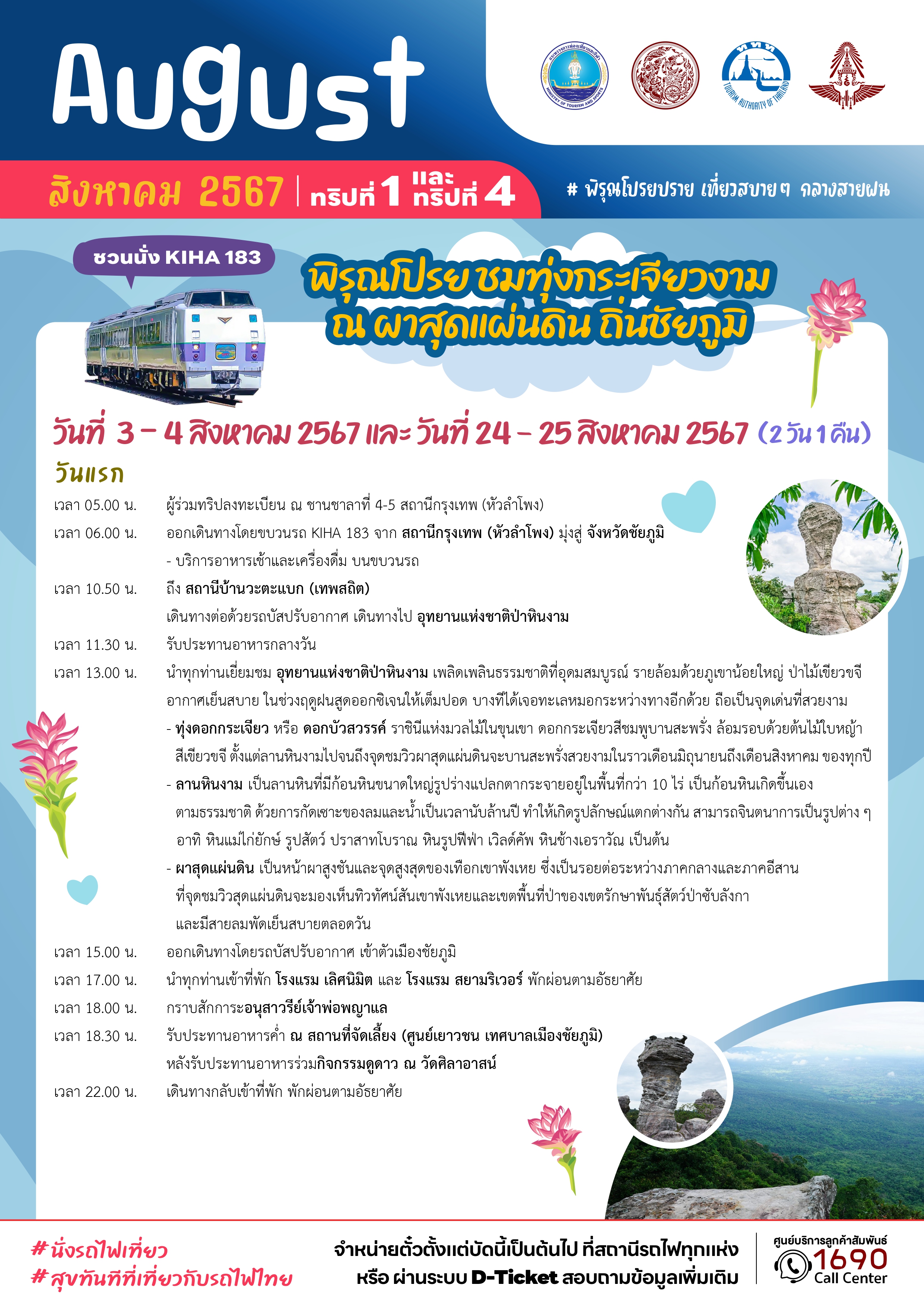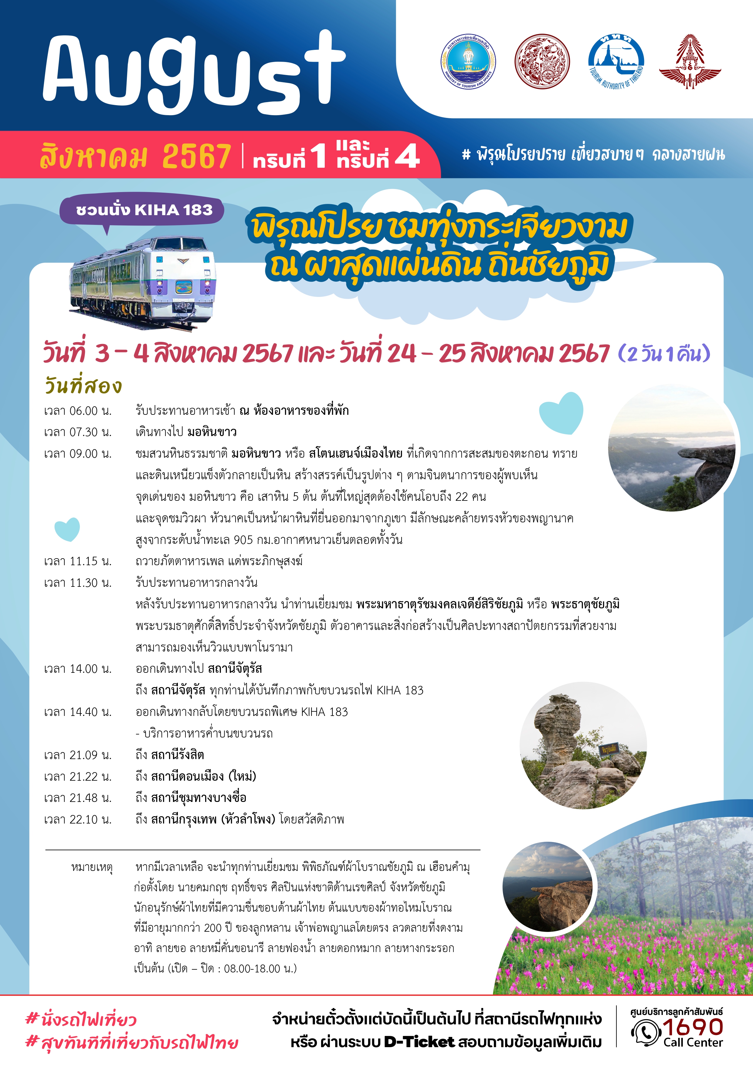 เยี่ยมชมลานหินงาม และทุ่งดอกกระเจียว ณ อุทยานแห่งชาติป่าหินงาม สัมผัสสวนหินธรรมชาติ มอหินขาว หรือ สโตนเฮนจ์เมืองไทย กราบสักการะอนุสาวรีย์เจ้าพ่อพญาแล และพระมหาธาตุรัชมงคลเจดีย์สิริชัยภูมิ พระบรมธาตุศักดิ์สิทธิ์ประจำจังหวัดชัยภูมิ