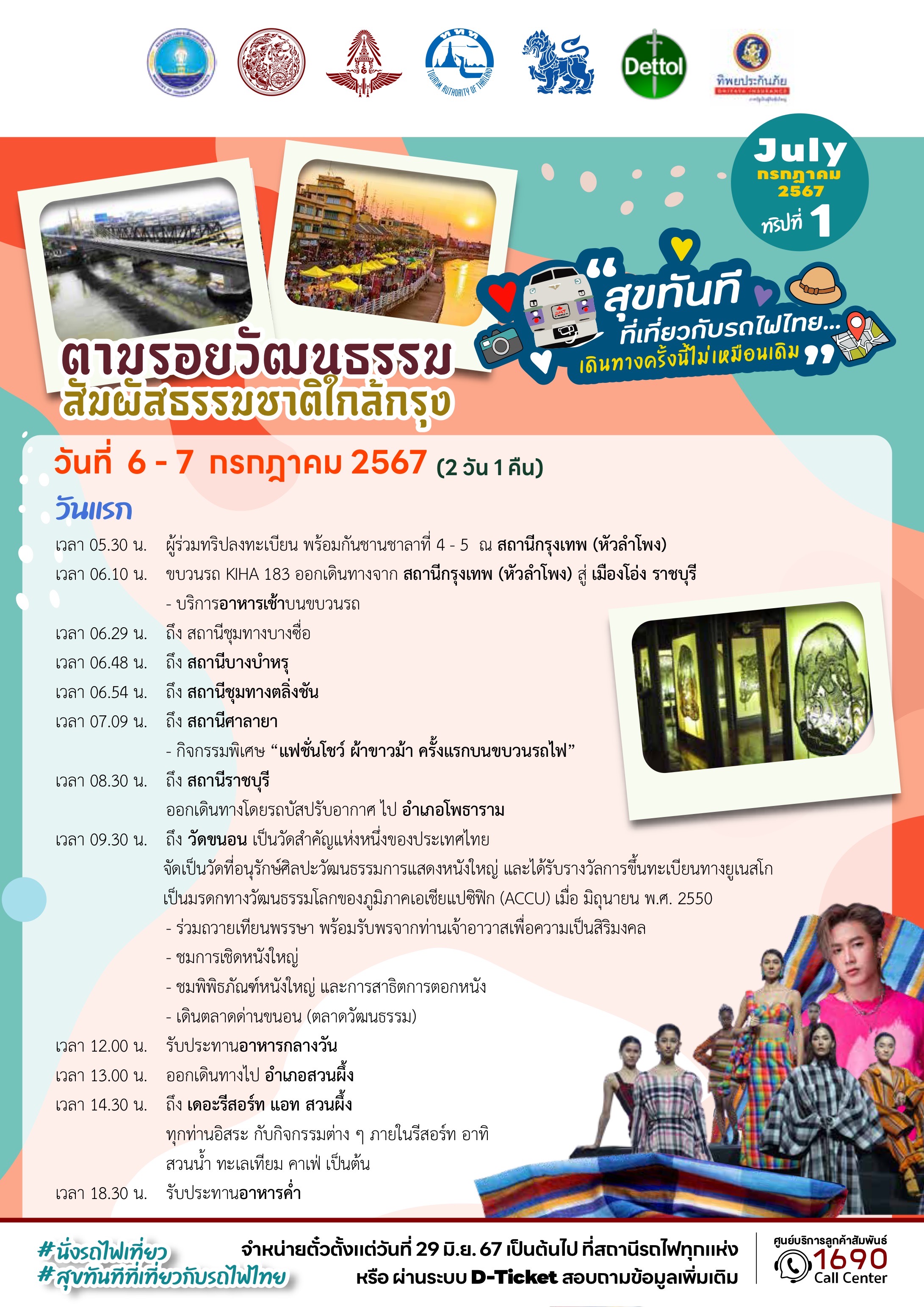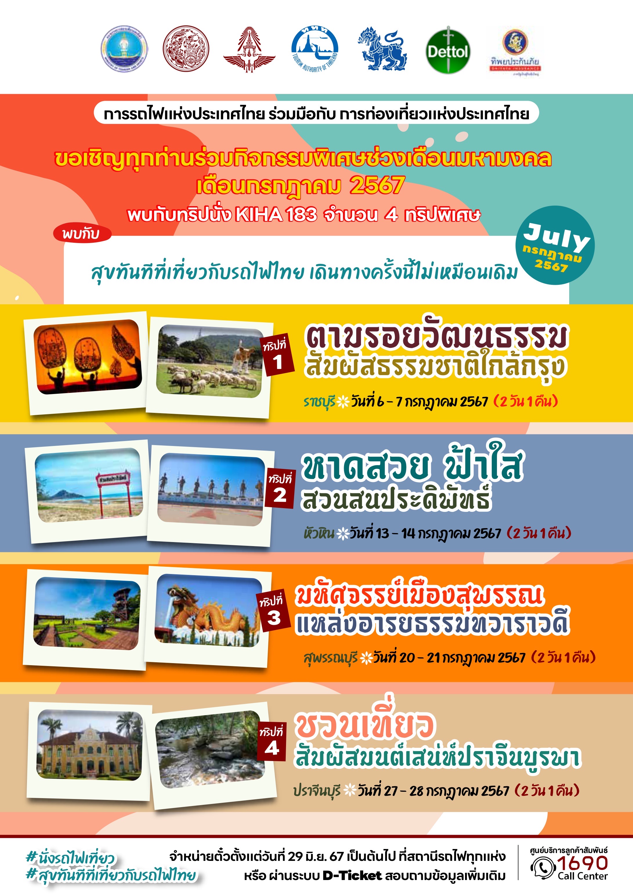เพื่อส่งมอบประสบการณ์เดินทางท่องเที่ยวรูปแบบใหม่ ผ่านการเดินทางโดยรถไฟ ที่มีความสะดวกสบาย ความปลอดภัย ช่วงเดือนกรกฎาคม-สิงหาคม 2567 จำนวน 6 เส้นทาง ประกอบด้วย