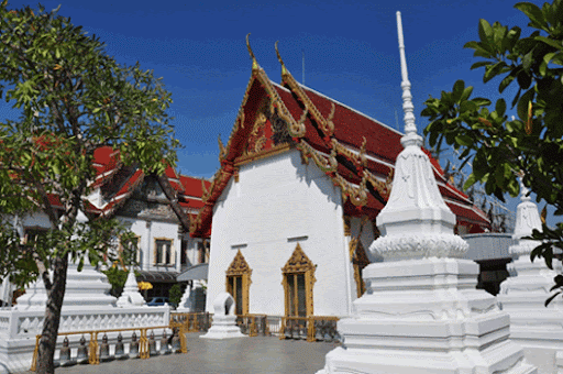 ซึ่งเรียกกันว่า พวกบ้านแหลม จนต่อมาก็กลายมาเป็น หมู่บ้านแหลม โดยได้มีการบูรณะวัดแห่งนี้และเรียกชื่อใหม่ว่า วัดบ้านแหลม โดยวัดนี้ได้รับวิสุงคามสีมา เมื่อประมาณปี พ.ศ.2400 มากันที่ หลวงพ่อบ้านแหลม บ้าง เรียกได้ว่าเป็นพระพุทธรูปที่ศักดิ์สิทธิ์ ที่ชาวบ้านให้ความเคารพศรัทธาอย่างมาก ส่วนใหญ่จะนิยมไปไหว้ขอพรในเรื่องของโรคภัยไข้เจ็บ แคล้วคลาดปลอดภัย"