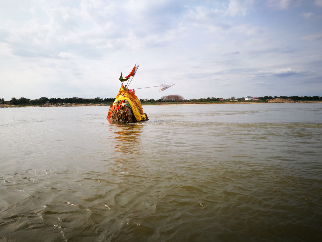พระธาตุกลางน้ำ หรือพระธาตุหล้าหนอง เป็นเจดีย์ที่บรรจุพระบรมสารีริกธาตุโบราณมานานหลายร้อยปี เดิมเจดีย์อยู่บนฝั่งริมน้ำในเขตวัดพระธาตุหนองคาย ปี พ.ศ. 2390 ถูกกระแสน้ำกัดเซาะจึงอยู่กลางลำน้ำโขงห่างจากฝั่งประมาณ 200 เมตร ดังเช่นปัจจุบันจะเห็นได้ชัดเจนในช่วงฤดูแล้ง ภายในองค์พระธาตุประดิษฐานพระบรมธาตุฝ่าพระบาทเก้าพระองค์ตามตำนานอุรังคธาตุ (พระธาตุพนม) จากการสำรวจใต้น้ำของหน่วยโบราณคดีภาค ๗ พบว่าองค์พระธาตุมีฐานกว้างด้านละ 17.2 เมตร ย่อมุมที่ฐาน และมีความสูง 28.5 เมตร หักออกเป็น 3 ท่อน สันนิษฐานว่าน่าจะสร้างในราวพุทธศตวรรษที่ 20-22 เนื่องจากมีรูปร่างคล้ายพระธาตุบังพวน ปัจจุบันได้มีการสร้างพระธาตุหล้าหนองหรือพระธาตุกลางน้ำ (จำลอง) ขึ้นไว้บนฝั่ง เพื่อเฉลิมพระเกียรติแด่สมเด็จพระนางเจ้าสิริกิติ์พระบรมราชินีนาถ (ในรัชกาลที่ 9) เนื่องในวโรกาสที่ทรงเจริญพระชนมพรรษา 72 พรรษา ด้านในขององค์พระธาตุหล้าหนองเป็นที่ประดิษฐานสุวรรณฉัตรเจ็ดยอดที่สร้างขึ้นเพื่อเฉลิมพระเกียรติแด่พระบาทสมเด็จพระปรมินทรมหาภูมิพลอดุลยเดช รัชกาลที่ ๙ เนื่องในวโรกาสที่ทรงเจริญพระชนมพรรษา 84 พรรษา ยอดปลีฉัตรออกแบบเป็นรูปดอกบัวเถา 7 ชั้น ประดับด้วยอัญมณีมงคลต่าง ๆ ลวดลายแต่ละชั้น หมายถึงความสง่างามแห่งปัญญา